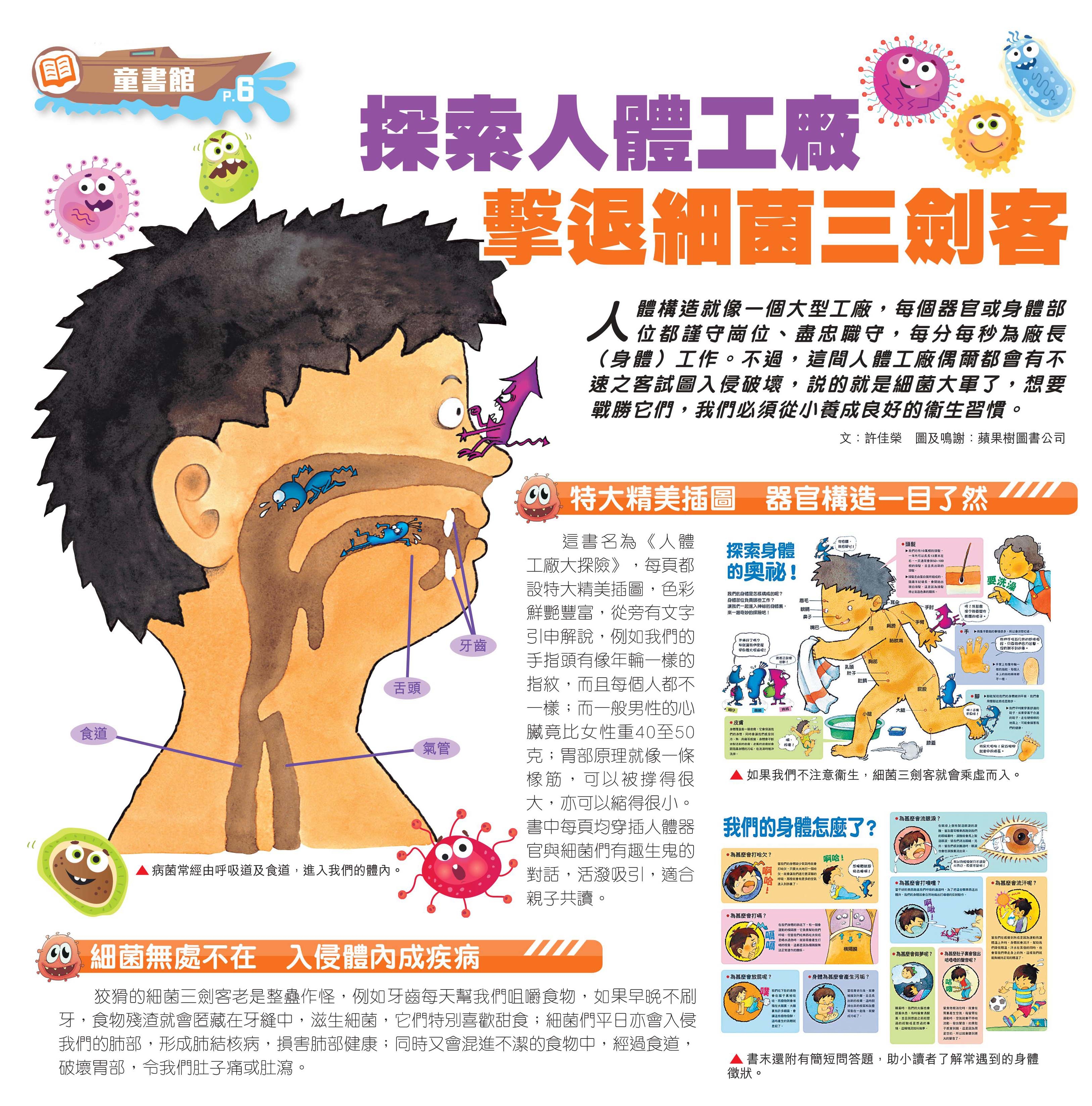 2. 書中沒有複雜、艱深的醫學名詞,而是利用造型可愛、清晰簡明的人體構造繪圖,提升閱讀樂趣,引發幼童探索人體奧妙的興趣。