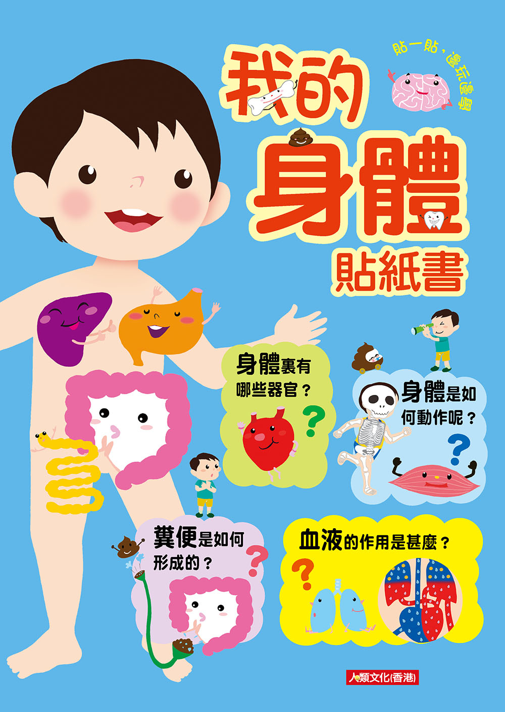 1. 藉着有趣的貼紙遊戲,讓孩子逐漸認識臉的五官、身體器官、消化系統、呼吸系統等,建立對人體的基本常識。